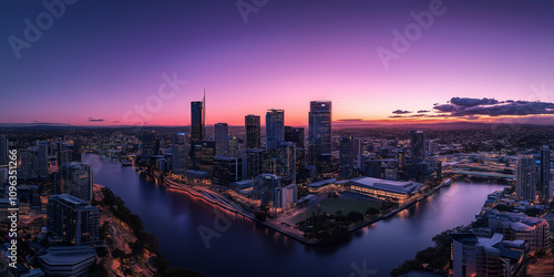 © song, Obraz premium Modern City Skyline with Office Buildings and Drone View at Sunset