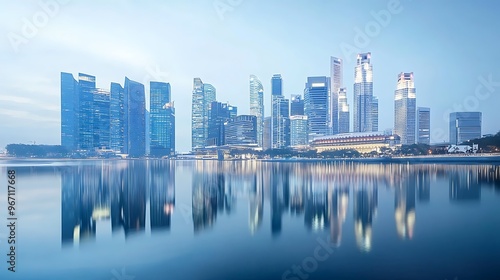 © XtzStudio, Fototapeta premium Modern City Skyline with Reflection in Water