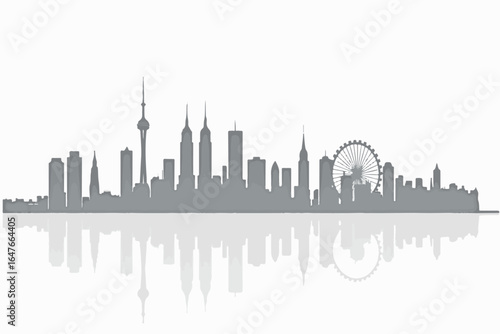 Naklejka premium Modern City Skyline with Reflection – Minimalist Urban Landscape Vector