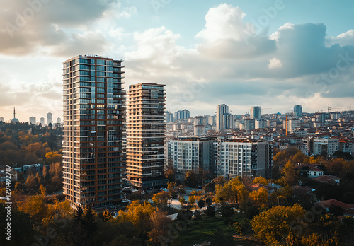 Obraz premium Modern City Skyline with Residential High-Rise Buildings
