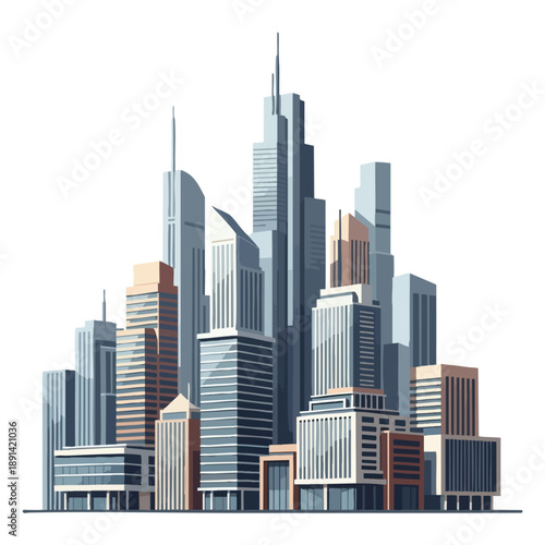 © Tejjo, Fototapeta premium Modern City Skyline with Skyscrapers
