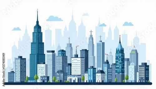 Fototapeta premium Modern City Skyline with Tall Buildings and Clear Blue Sky