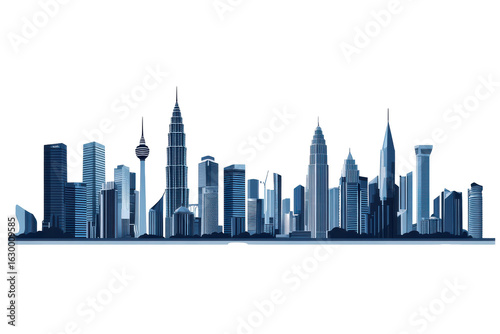 Obraz premium Modern city skyline with tall skyscrapers and towers isolated on transparent background. Kuala lumpur skyline featuring iconic towers and modern buildings isolated on a white background.
