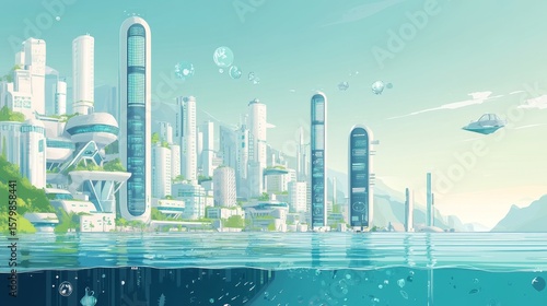 © Galang, Obraz premium Modern City Skyline with Tech Overlay