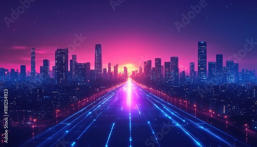 © IQ-Photography, Fototapeta premium Modern city with communication network. Online connection and data traffic. Telecommunications and technology background, hd image