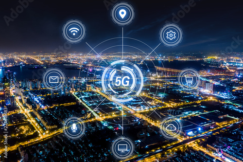 © MyCreative, Obraz premium Modern city with wireless network connection concept