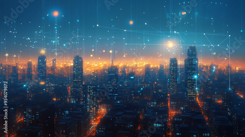 © Raja, Obraz premium Modern city with wireless network connection concept.