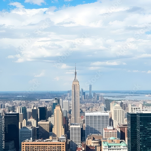 © Aqsa, Fototapeta premium Modern cityscape by sea against sky