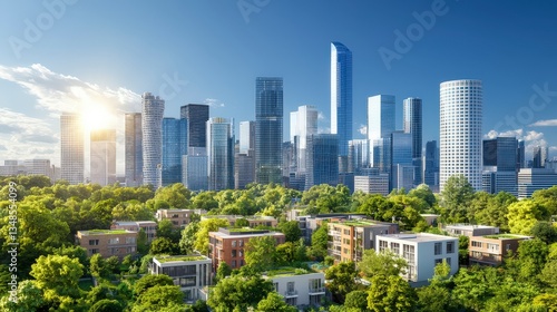 Obraz premium Modern Cityscape Eco Friendly Urban Design with Lush Greenery
