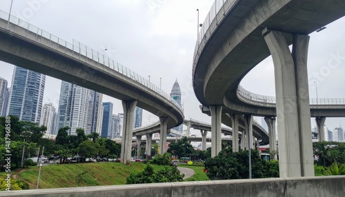© Kitta Studio, Fototapeta premium Modern Cityscape Featuring Interconnected Skybridges and Walkways