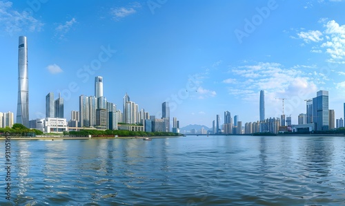 Fototapeta premium Modern cityscape, panoramic background