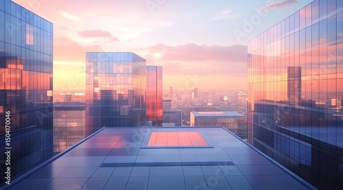 Fototapeta premium Modern cityscape rooftop at sunrise
