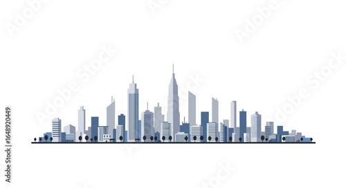 © Sapphire, Naklejka premium Modern cityscape silhouette with skyscrapers and trees in minimalist style