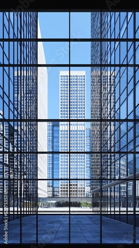 © Sally, Fototapeta premium Modern Cityscape Viewed Through Glass Panels