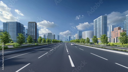 © imlane, Fototapeta premium modern cityscape with a view from the road, ultra realistic