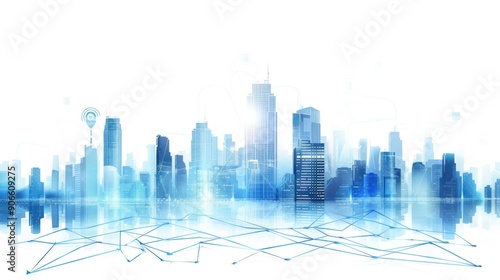 © Anisah, Fototapeta premium Modern Cityscape with Connected Network
