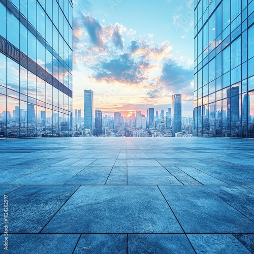 Fototapeta premium Modern Cityscape with Empty Plaza and Sunset Sky
