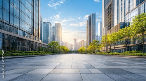 © Nas, Fototapeta premium Modern Cityscape with Empty Street and Skyscrapers