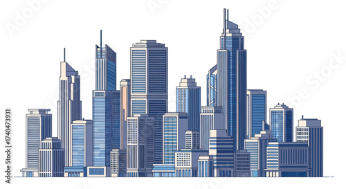 Fototapeta premium Modern Cityscape with Skyscrapers and High-Rise Buildings Against a White Background.