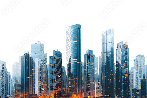 Obraz premium Modern cityscape with tall skyscrapers isolated on transparent background