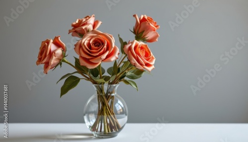 © CozyCollect, Fototapeta premium modern clean lines with minimalist design featuring metallic painted roses in a sleek glass vase.