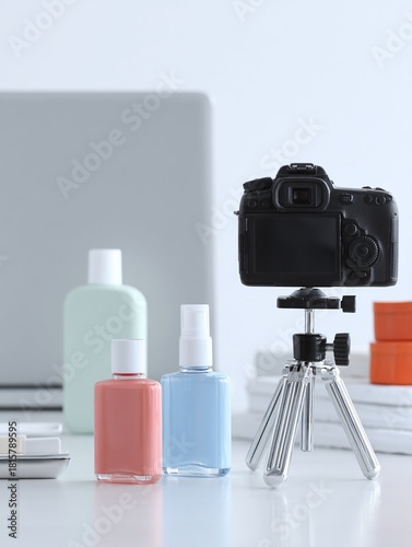 Fototapeta premium Modern clean studio product photoshoot for ecommerce showcases cosmetics.