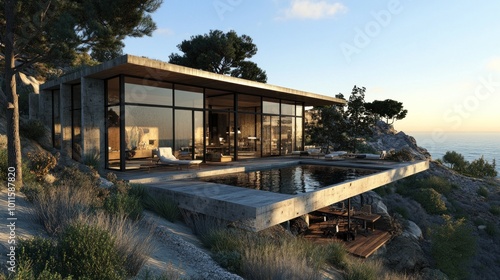 © Anisah, Obraz premium Modern Cliffside House with Pool