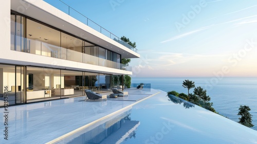 © @desy, Obraz premium Modern Cliffside Mansion with Infinity Pool