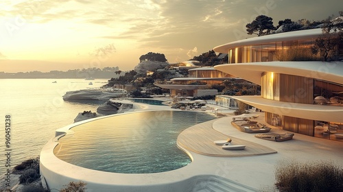© Arieswanto, Fototapeta premium Modern Cliffside Villa with Infinity Pool and Ocean View