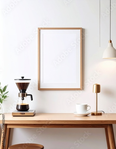 © audips, Fototapeta premium Modern Coffee Brewing Scene with Picture Frame Mockup