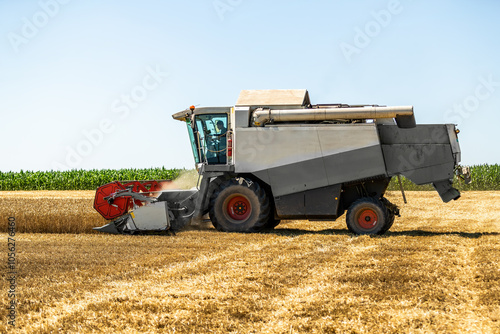 © oticki, Fototapeta premium Modern combine harvester at work during the wheat harvest season