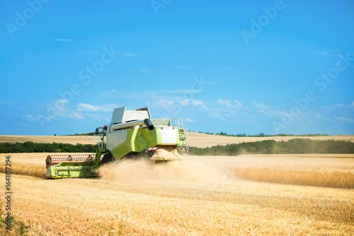 Fototapeta premium Modern combine harvester working in wheat field