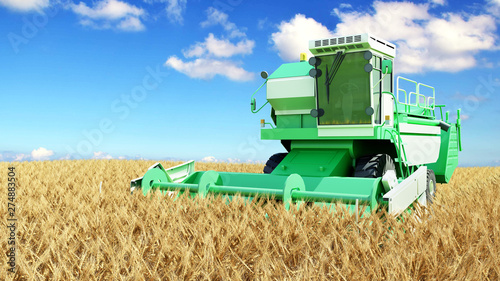 Fototapeta premium modern combine harvester working on a wheat crop 3g render