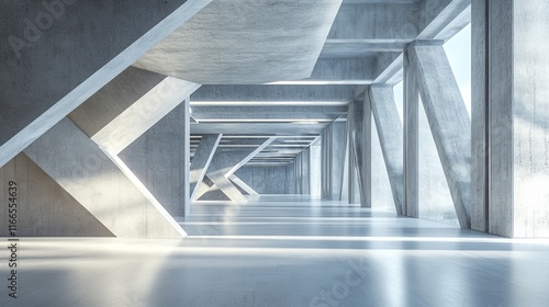 Obraz premium Modern concrete architectural corridor with sunlight.