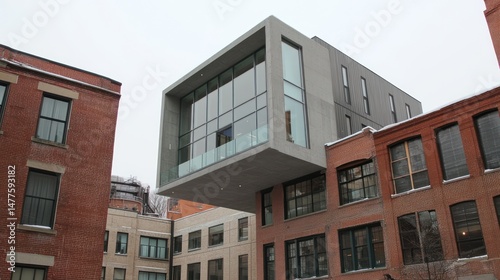 © Oddo Art, Fototapeta premium Modern concrete building contrasting older brick structures.