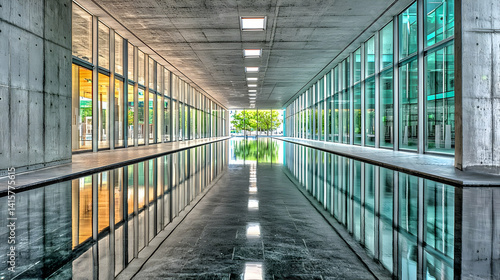 © julio, Obraz premium Modern Concrete Corridor With Reflections
