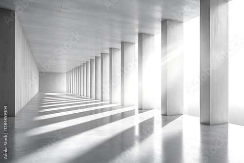 Fototapeta premium Modern Concrete Corridor with Sunlight Streaking Through Columns