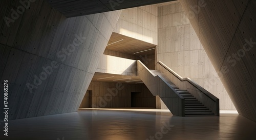 Obraz premium Modern Concrete Interior Architecture with Dramatic Staircase Lighting