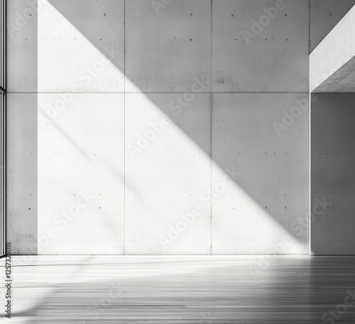 Obraz premium Modern concrete interior, sunlight streams in, empty space