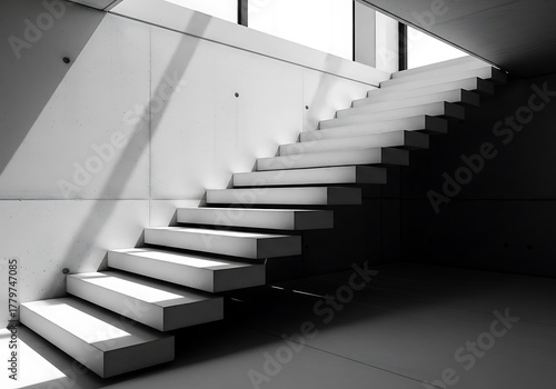Obraz premium Modern concrete staircase with dramatic lighting