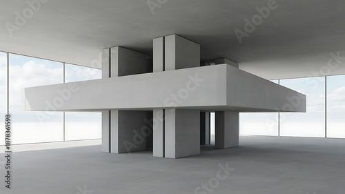© Emran, Obraz premium Modern Concrete Structure With Large Windows architecture