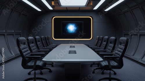 Naklejka premium Modern Conference Room Design with Futuristic Technology Elements