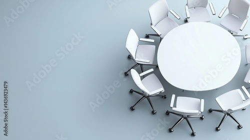 © saichon, Fototapeta premium modern conference room setup featuring round table surrounded by white office chairs, creating collaborative atmosphere