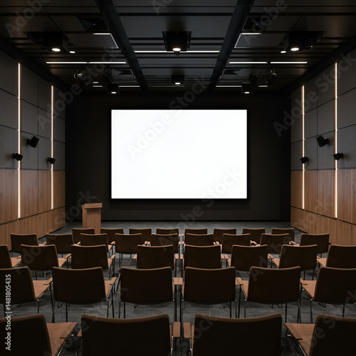 © ibrandify, Fototapeta premium Modern conference room with brown seating for presentations