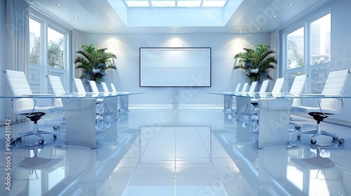 Fototapeta premium Modern conference room with large windows, sleek furniture, and a clean,...