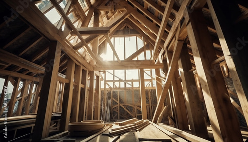 © Stockgiu, Obraz premium Modern construction site activity designing and building a new roof