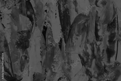 © artistmef, Naklejka premium Modern contemporary acrylic background. Black texture made with a palette knife. Abstract painting on paper. Mess on the canvas.