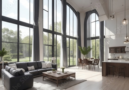 © Fahim, Fototapeta premium Modern Contemporary living and kitchen room interior .white and wood material 3d render