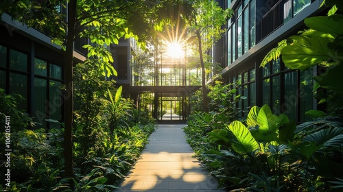 © soha, Obraz premium Modern Corporate Building with Greenery Pathway