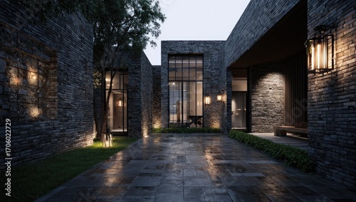 Fototapeta premium Modern courtyard home at twilight
